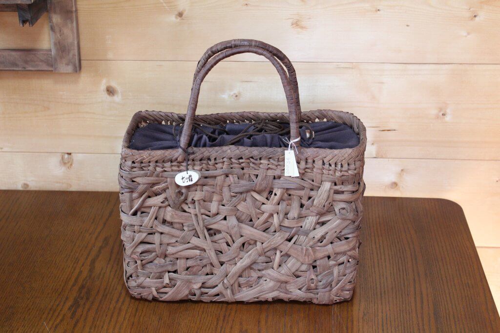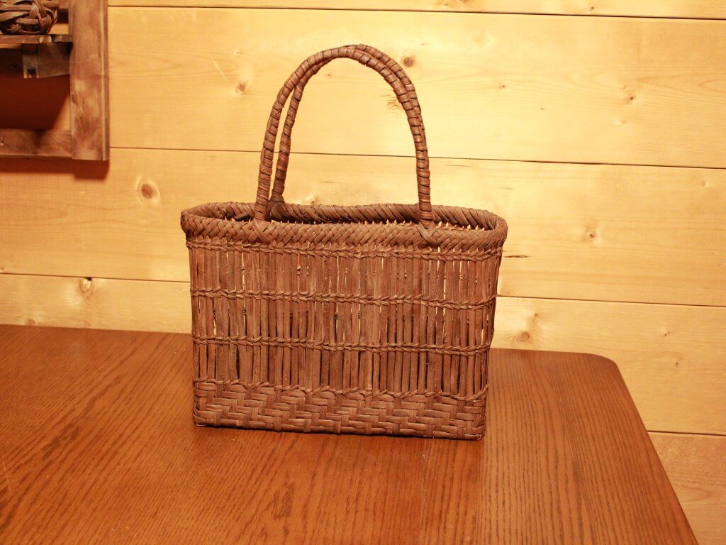 ⑥籠 3目飛8mm幅網代編み持ち手山葡萄の芯