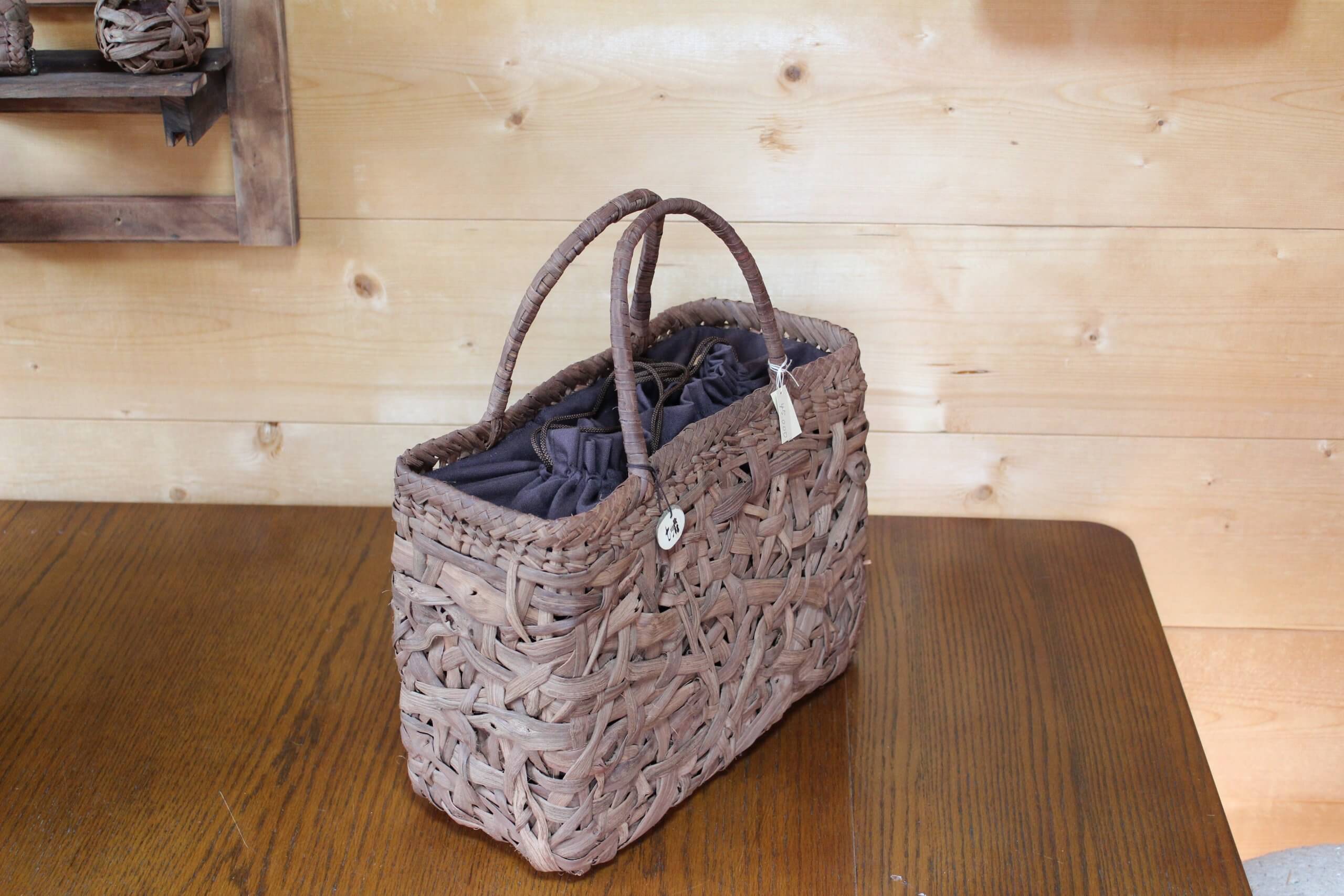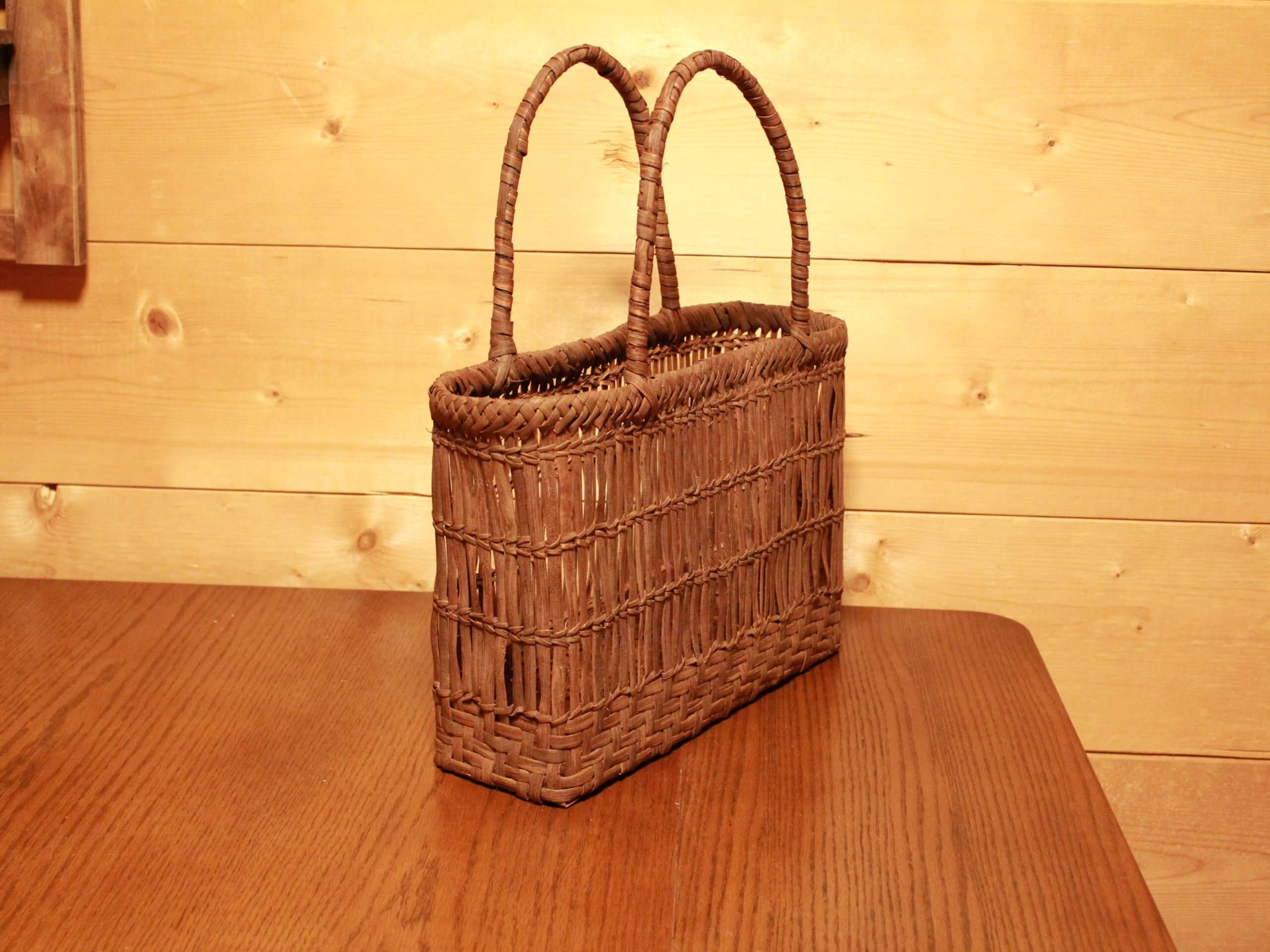 ⑤籠 3目飛8mm幅網代編み持ち手山葡萄の芯